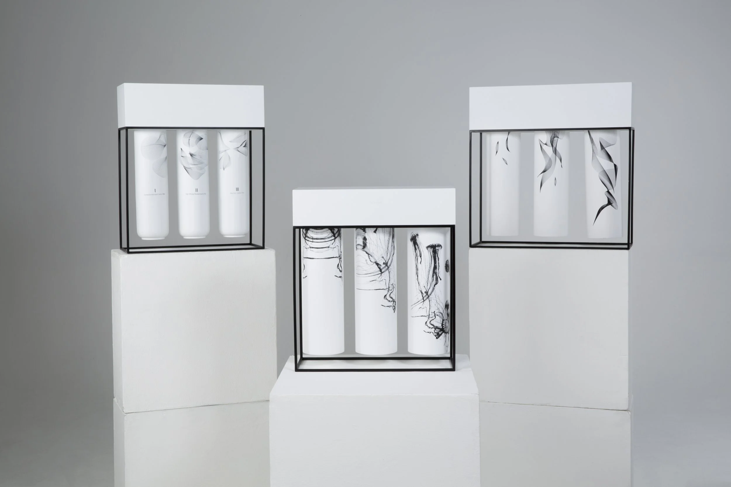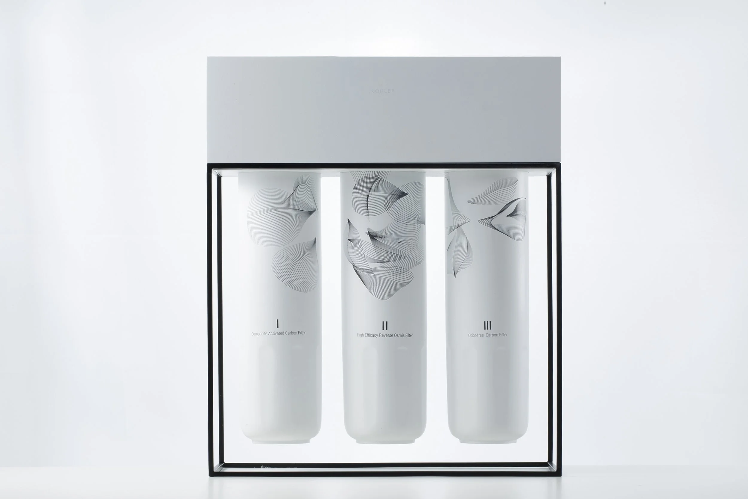 Frame is a minimalist water filtration system that celebrates, rather than conceals, its function. Three cylindrical filters become an elegant composition — a piece of art beautifully framed for your home.